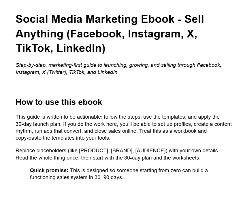 Social Media Marketing Ebook – Sell Anything (Facebook, Instagram, X, TikTok, LinkedIn)